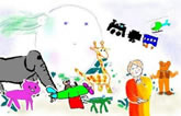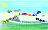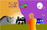 この絵本はAiが乗物の絵をAyaが動物の絵を描いてくれました。Sheiは何枚かの絵を提供してくれました。みんなタブレットを使ったパソコンの絵です。 当時Aiが4年生、Ayaが1年生のときです。その絵をもとにしてMassaがまとめたものです。 |