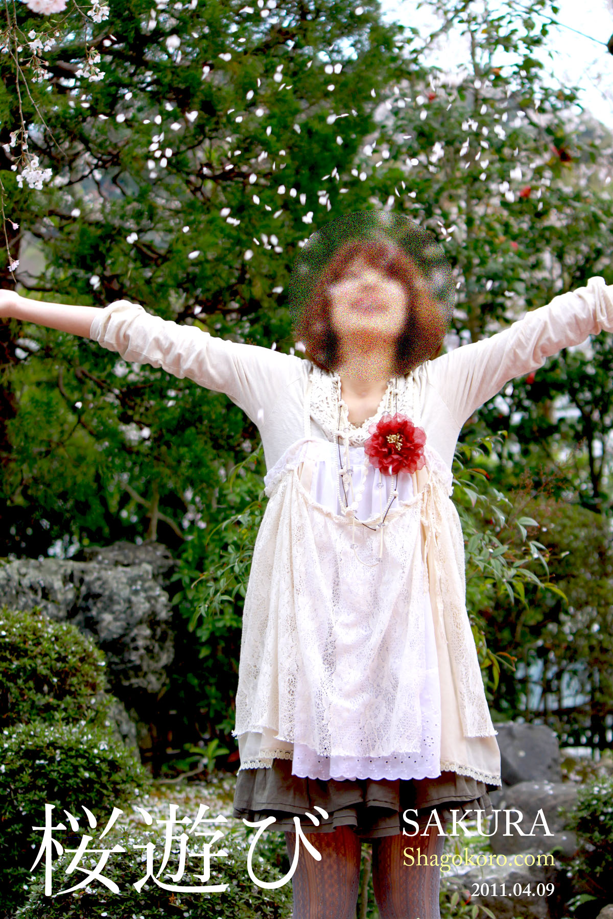 ある4月の桜の花びらで遊ぶ乙女のような「さくら」さんとの撮影。